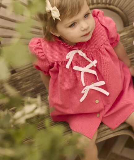 Vestido vichy lazos fresa