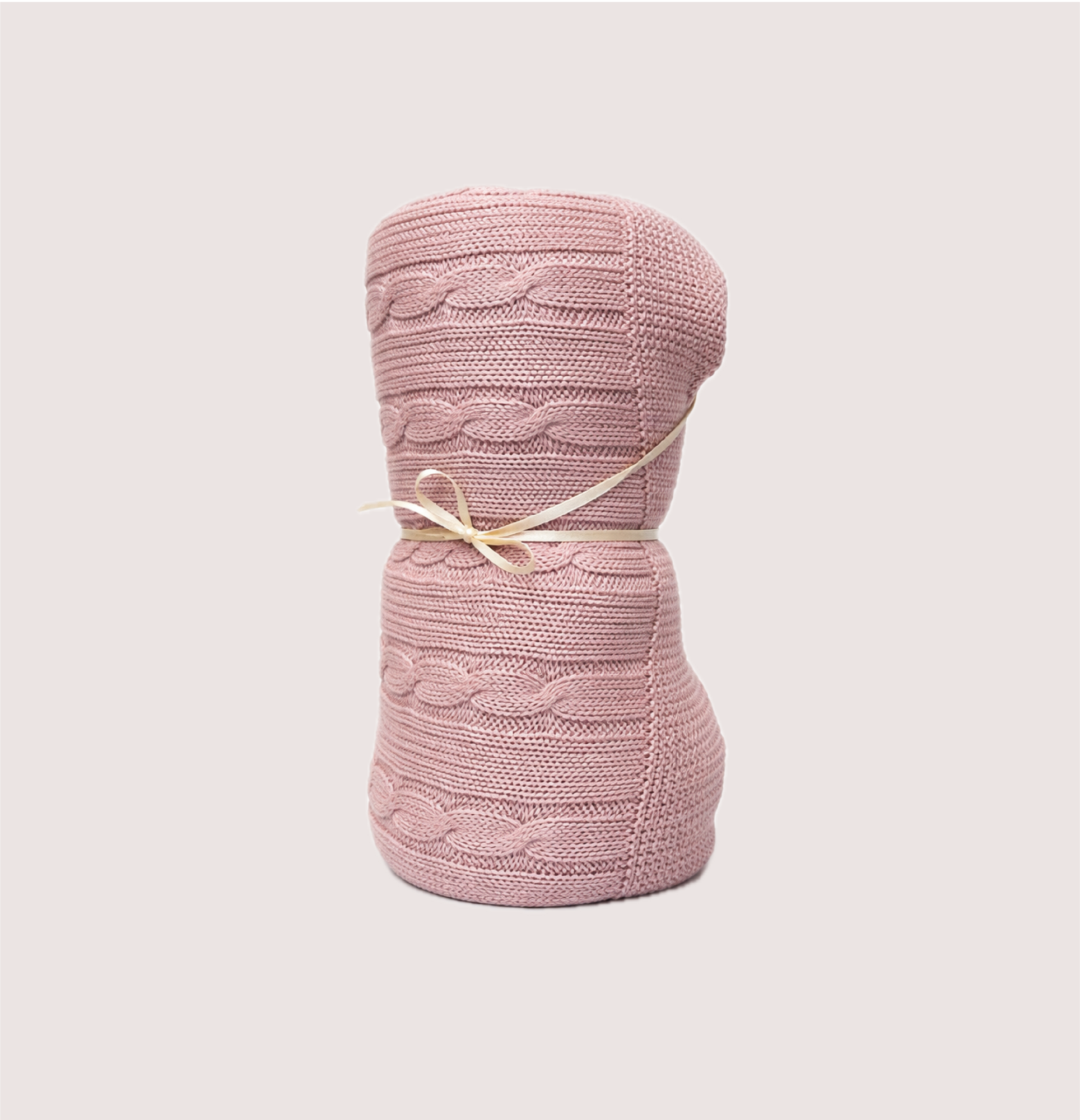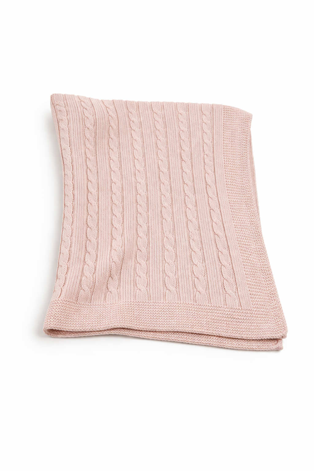 Manta de punto con diseño de trenzas verticales y acabado elegante. Suave, acogedora y perfecta para aportar calidez y estilo a cualquier espacio. Está disponible en color rosa, celeste, blanco y beige.