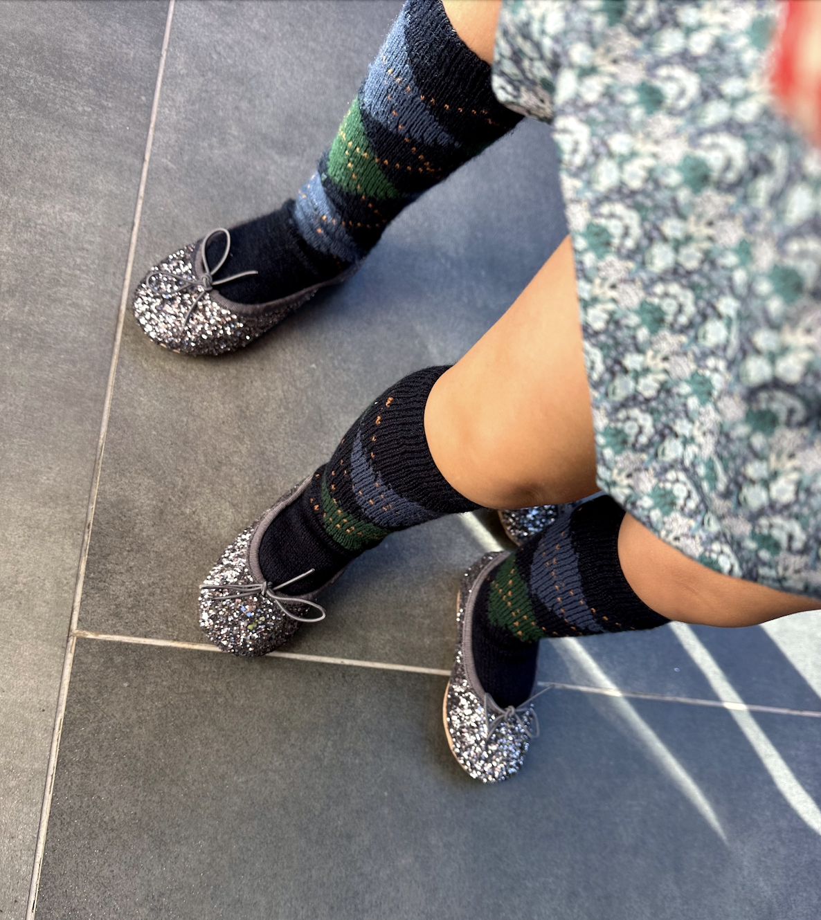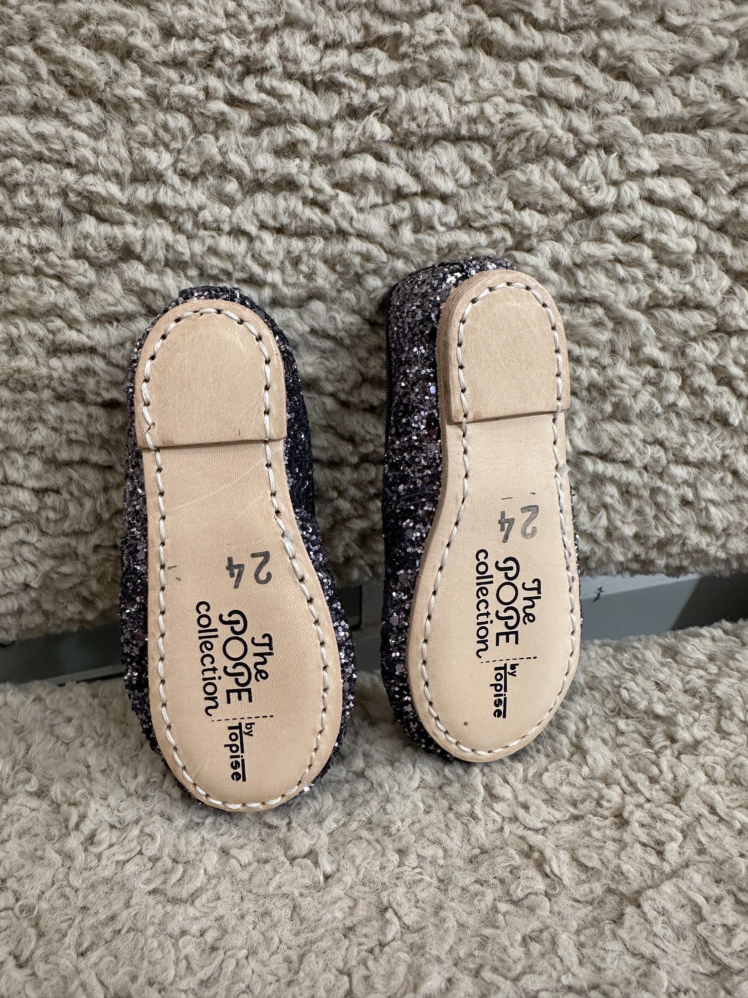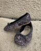 Bailarina de niña en purpurina gris antracita, perfecta para aportar un toque especial a cualquier look. Con suela blanda y goma elástica en el lazo, ofrece un ajuste cómodo y seguro para los pies más pequeños. Ideal tanto para el día a día como para ocasiones especiales, combina estilo, brillo y confort en un solo diseño.